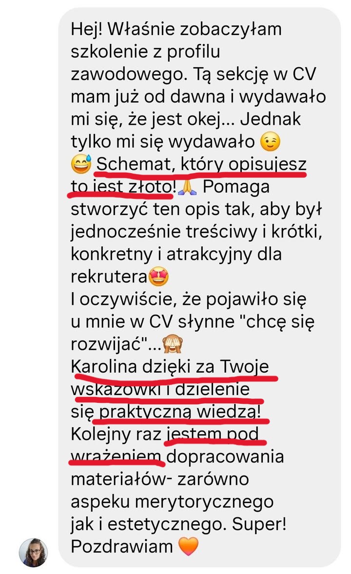 Robię to, bo chcę Ci pokazać, że jesteś wartościową osobą, która w procesie rekrutacji może sprzedać swoje kompetencje, a tym samym zdobyć wymarzoną pracę!